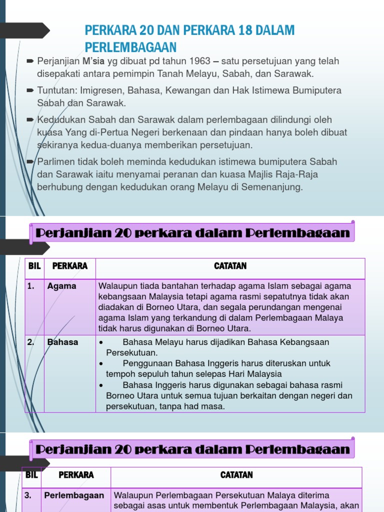 Related : Perjanjian 20 Perkara Sabah / Perjanjian 20 perkara sabah & 18 perkara sarawak..