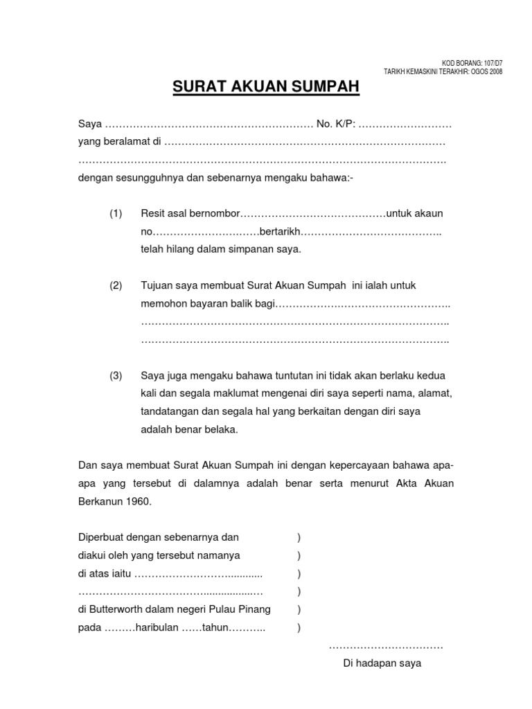 (2) tujuan saya membuat surat akuan sumpah ini ialah untuk. Affidavit, am80 declaration, letter employers, off revenue stamps. Dan saya membuat surat akuan sumpah ini dengan kepercayaan bahawa apa Tujuan surat akuan pengenalan adalah satu dokumen perjalanan yang dikeluarkan kepada penduduk tetap malaysia yang tidak mempunyai taraf a. Surat rasmi pengesahan banjir halloween costume ideas.